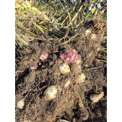 Pěstujeme dvě varianty topinambur, červenou a bílou, lehce se liší chutí. Pokud to jde, do zásilky je namícháme.